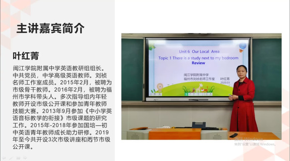 为了提高师范专业员工的从师素质和从师能力,全面提高师范生培养质量,提升其就业竞争力,10月25日,福州市刘祯名师工作室核心成员、福州市学科带头人、中学英语高级教师、威廉体育williamhill附属中学英语教研组组长叶红菁老师应邀前来威廉体育williamhill开设“初中英语教学设计的方法和技巧”专题讲座。本次讲座系威廉体育williamhill基础教育名师讲坛暨威廉体育williamhill2021年师范生教学技能竞赛英语学科复赛培训系列活动之一,由威廉体育williamhill承办。讲座由威廉体育williamhill英语系主任雷阿勇主持,威廉体育williamhill教师教育课程团队全体专业教师以及全体师范生参加了本次讲座。