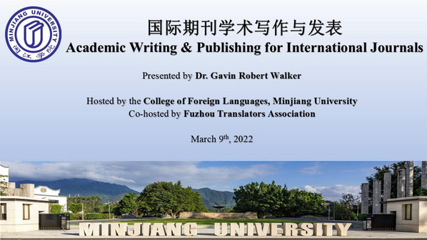3月9日下午,由威廉体育williamhill主办、福州市翻译协会协办的国际期刊学术论文写作与发表培训班在福万楼719会议室拉开序幕。威廉体育williamhill外籍副教授Gavin Robert Walker博士担任主讲人,开展为期8周的系列讲座活动。威廉体育williamhill经理陈洪富、部分外语教师及福州译协会员参与了开班仪式及讲座活动。