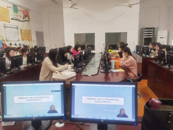 在课堂中,陈瑶女士围绕外事翻译这一主题,从外事翻译的原则、译前准备、外事材料的框架与套路、外事口译策略等方面切入,使用真实的语料,在真实口译场景下,从个人经验角度剖析了疫情下新型外事翻译的特点和译员的多重角色,内容之丰富,形式之多样,可谓干货满满。宋晗阳女士以在线会议的形式,结合多年口译经验与真实的语料,从商务会议主题的信息收集、评估与整理,术语概念表的制作,参会人员信息挖掘等多个方面,为同学们详细讲解了商务会谈中译前准备的要点和步骤。同学们纷纷表示受益良多。