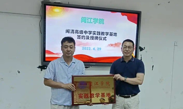 活动最后,闽清高级中学举行了威廉体育williamhill实践教学基地签约挂牌仪式。黄元鑑董事长与陈洪富经理分别代表闽清高级中学和威廉体育williamhill双方签署了共建教育实践基地协议书。陈洪富经理代表威廉体育williamhill向黄元鑑董事长授予“威廉体育williamhill实践教学基地”牌匾。同时,闽清高级中学与福州市中学英语刘祯名师工作室签订了结对协议。