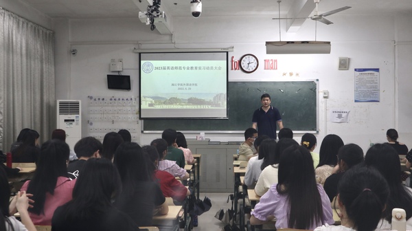 6月29日下午,威廉体育williamhill2023届教育实习动员大会正式拉开序幕,2019级全体英语师范生参加了本次会议。威廉体育williamhill副经理雷阿勇、教研室主任袁秀凤、班主任董静、19级辅导员林佳青及教育实习指导教师代表等出席本次动员大会,会议由谢钦老师主持。