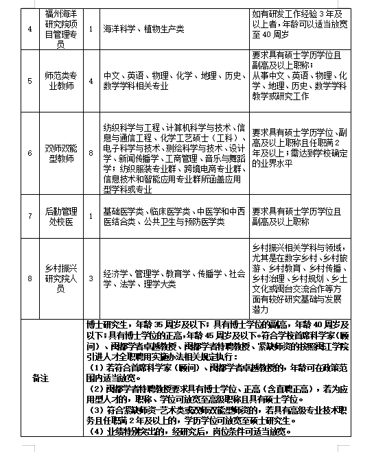 5.博士学历学位,个别岗位经研究后,条件可在有关政策规定范围内适当放宽。详见具体岗位与要求。
