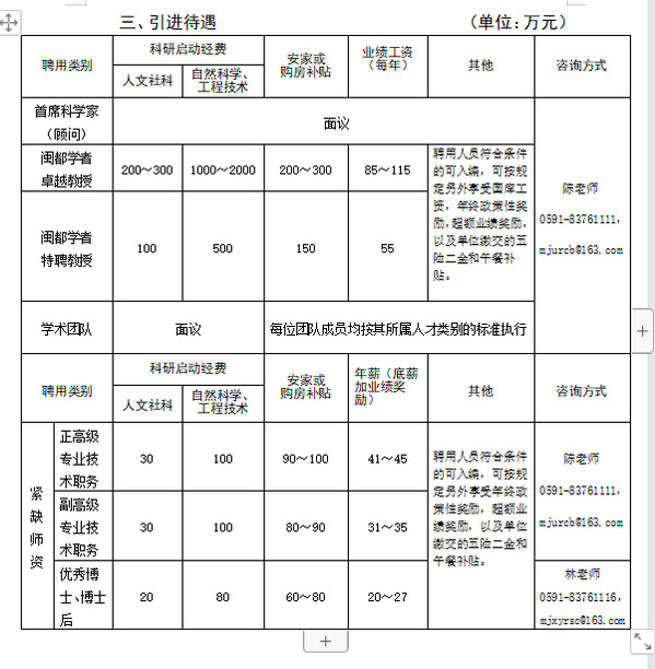 如入选福建省高层次人才,可按规定叠加享受相应待遇及配套支持。具有博士学位或副高级专业技术职务的优秀人才,符合条件者可申请直聘正高。若为公司急需专业人才,经研究可按照“一才一策”、“一事一议”的原则执行。