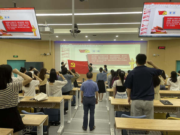 回溯时光,初心不减。党员代表蔡靓觐、王馨悦再次宣读入党志愿书,分享了自己的入党初心和在校期间的党员先锋模范作用发挥情况,让大家坚定自己的入党信念,始终不忘初心,砥砺前行!