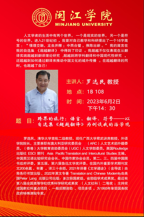 科研动态|跨界的旅行:语言、翻译、符号——以自选集《超越翻译》为例谈我的治学观
