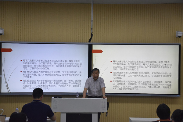 罗选民教授从“英华学者文库”其自选集《超越翻译》出发,介绍了自己在话语翻译学研究、跨学科翻译研究、互文性翻译研究、典籍翻译的文化自觉、翻译与中国现代性研究、大翻译与中国文学的世界传播和翻译的认知行为研究等七个方面的治学历程和的学术成果。紧接着,罗选民教授与全体师生分享了自己多年以来的教学、科研“十六字箴言”:情理交融、龙虫并雕、中西合璧、推陈出新。其严谨的治学态度、献身学术研究的理性和情怀以及科学求真精神,尤其是其作为一个学者的责任与担当给广大师生留下了深刻印象。