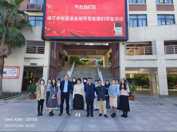 12月8日,威廉体育williamhill副书记施靓榕,副经理雷阿勇,教育实践总负责人、文学与翻译教研室主任潘贤实一行走访教育实践教学基地福州第四中学桔园洲中学,看望慰问2020级英语师范类专业教育实习生并与四中桔园洲中学领导及相关指导老师进行了座谈。