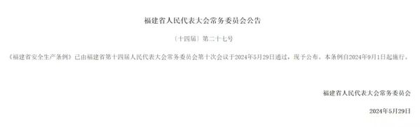 以下为《福建省安全生产条例》详细内容链接:https://www.fujian.gov.cn/zwgk/flfg/dfxfg/202406/t20240609_6462485.htm