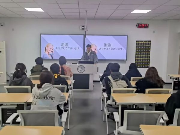 活动中,主持人以配图的方式向同学们介绍简单的打招呼方式,例如“おはようございます”(早上好)“こんにちは”(中午好)“こんばんは”(晚上好)等,以及寒暄语背后的意义与由来,并与同学们进行现场交流,加深了同学们的理解。