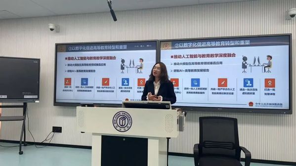 培训伊始,杨海红老师从高等教育数字化转型的背景切入,详细列举了国内高校在课程数字化建设方面的现状与发展趋势。她指出,随着AI技术的快速发展,数字化转型已成为高等教育领域的重要方向,而智慧课程的建设正是这一转型的关键环节。