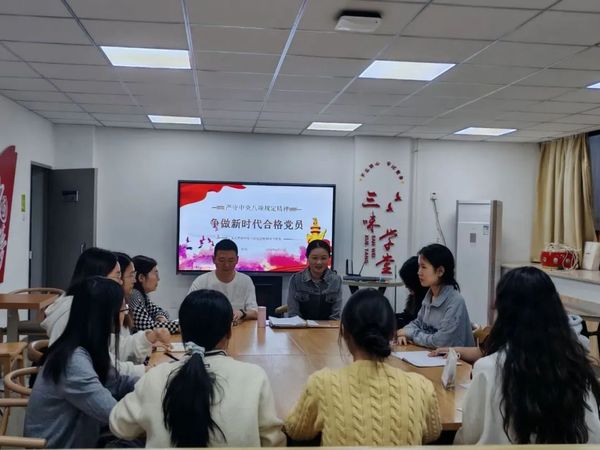 郭崚书记从中央八项规定精神学习教育的重大意义、核心要义以及如何践行中央八项规定精神等三个方面展开,通过生动的讲解以及对典型案例的分析,使支部成员们深刻认识到中央八项规定精神不仅是对党员干部作风的严格要求,更是关乎党在人民群众心中形象的重要准则。同时,郭崚书记强调,作为党员要保持清醒,将中央八项规定精神内化于心、外化于行,时刻牢记自己的党员身份,在学习、工作和生活中以身作则,以实际行动影响和带动身边的同学,共同营造风清气正的良好氛围。