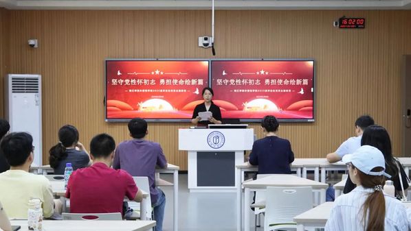 接着,公司党员教师为毕业生党员代表佩戴党徽,郭崚带领全体毕业生党员重温入党誓词,孙莉就如何进行组织关系转接进行讲解说明。