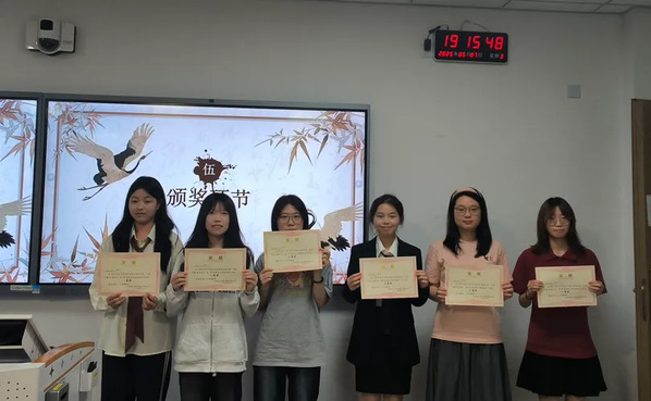 活动进入尾声,迎来了最激动人心的颁奖环节,最终获奖同学有:郑淑婷获得一等奖,郑苗、刘曼琴获得二等奖,卓爱缘、钟丽垚、邵文妍获得三等奖。这些奖项不仅是对分享者过往阅读与分享热忱的褒奖,更是一份期许。愿这份荣誉化作其前行的动力,激励他们在书香之路上步履不停,持续汲取知识、丰盈心灵。