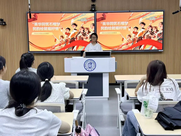 活动伊始,学习委员柯姝颖向大家介绍了活动背景、目的与流程,阐述了铸牢中华民族共同体意识的重要时代意义。随后,两位畲族同学钟丽清和钟丽垚为大家带来了精彩的畲族文化专题分享。她们通过丰富的图文资料生动展现了畲族的传统服饰、特色美食、“三月三”等重要节日及独特民俗文化,让现场同学直观感受到了畲族文化的魅力,增进了文化认同。