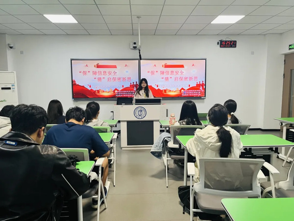 活动伊始,2023级英语(师范类)1班的团支书郑佳怡以“共筑保密防线,维护国家安全”为核心进行了主题宣讲。她结合复杂的国际形势与国内实际,阐述了国家保密工作的重要性。同时还普及了《中华人民共和国保守国家秘密法》的相关知识,让同学们对保密法律有了更清晰的认识。最后,她呼吁全体同学要从日常学习生活的点滴做起,严守国家秘密,共同筑牢安全防线。