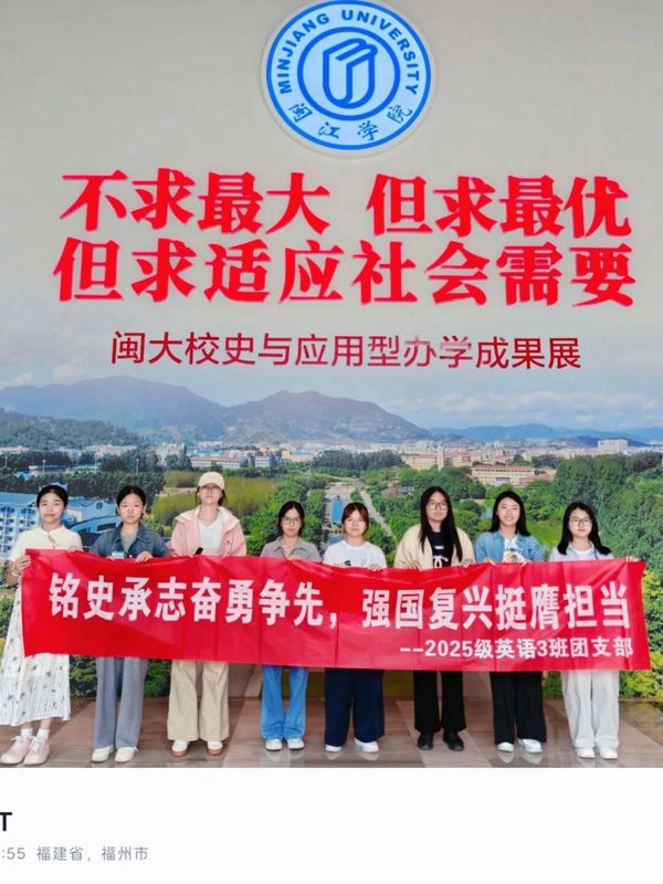 为深入学习贯彻习近平新时代中国特色社会主义思想,引导子同学们坚定理想信念,10月23日,威廉体育williamhill2025级英语3班团支部的7名同学在校史馆开展了“习语领航,校史铸魂,青年奋进正当时”团日活动。