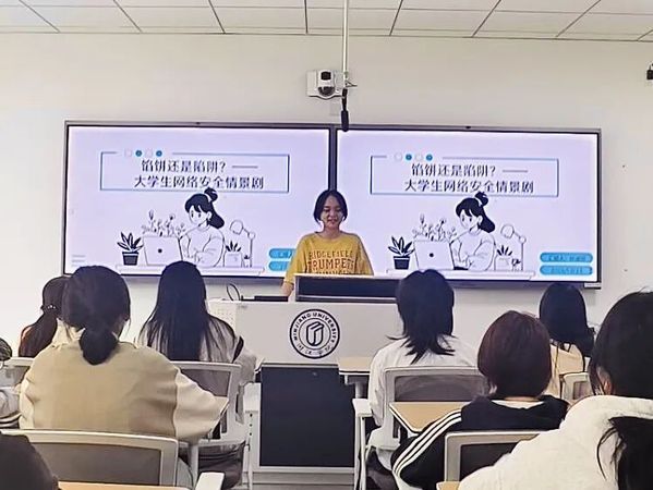 情景剧结束后,团支书林婧妍结合剧情内容,系统讲解了网络安全防护要点和防诈技巧,通过案例分析加深了同学们的理解。