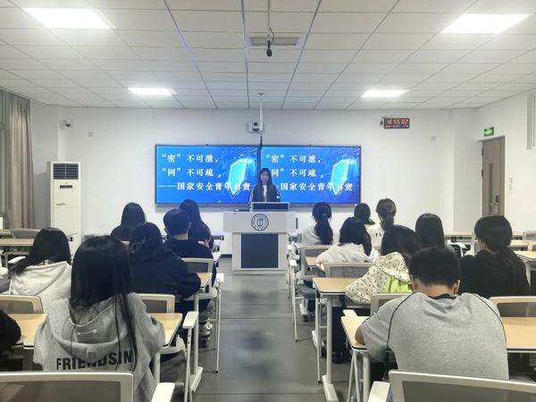 活动伊始,团支书张怡欣从技术、管理、法律维度阐释网络安全的核心定义,帮助同学们明确“保障网络环境稳定、数据可靠”的安全目标。随后,姜钰雯和钟雨婷两位同学通过情景演绎,还原校园贷款、网络购物等诈骗案例的常见套路,直观展现了网络风险的常见形式与隐蔽性,让安全警示更具代入感。
